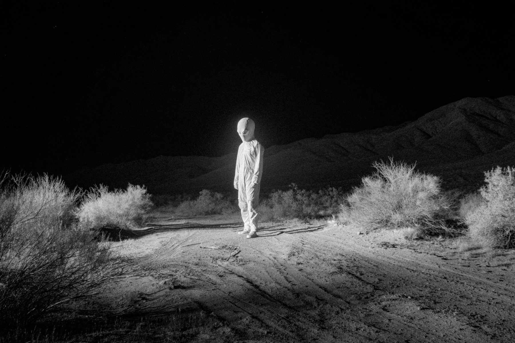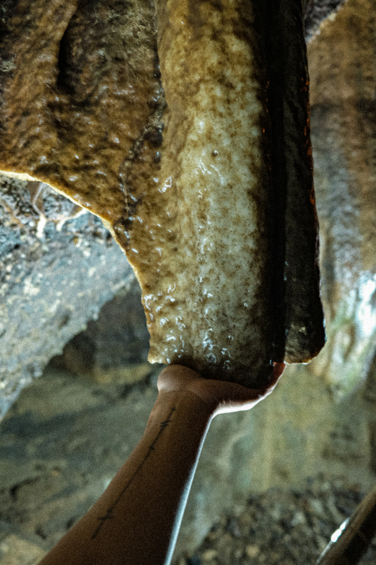 “Everett’s Notes” represents my attempt to rediscover the dreams of the cosmos. I am revisiting the fantasies of my childhood—imagining beings of immense scale, existing in the vastness of space. I believe that interstellar dust might be a form of biological remnants, and that the ephemeral creatures in the night sky could reveal the possibilities of a multiverse, delicate like the meteorite that once passed through me. The cave is an eternal night, a place where encounters of the third kind might occur. I once witnessed an unidentifiable flying object descend in the wilderness; it shifted shapes in the air and moved across the night sky without making a sound. In the cave, I saw the same blue glow as the meteorite. I know that “someone” lives here.
